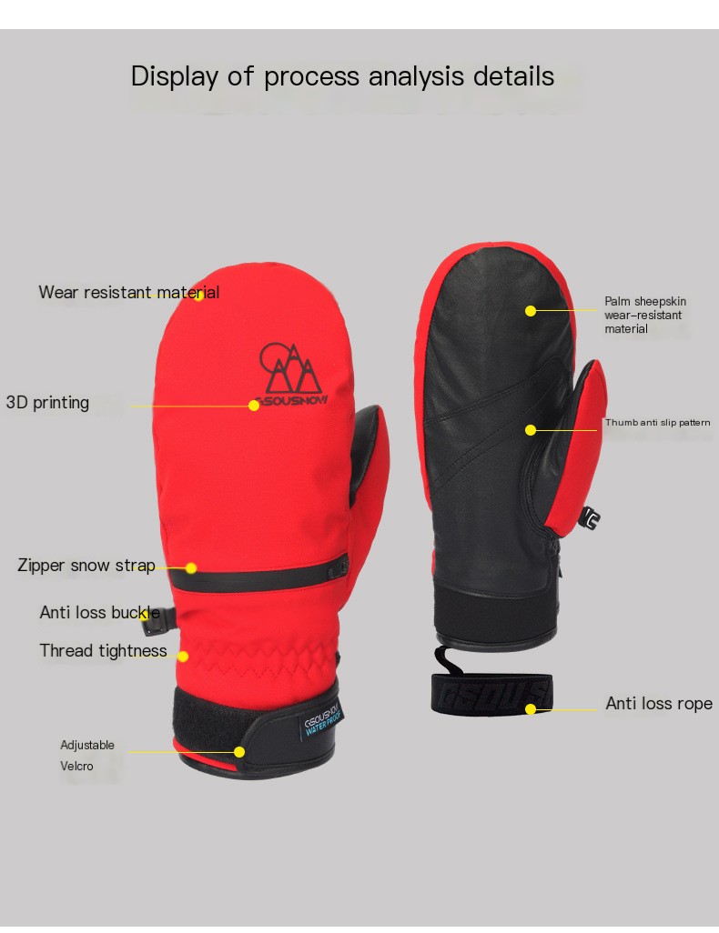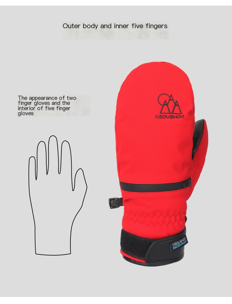 Each glove features a dedicated pocket for your snow pass, allowing for quick access while you're on the move. The five-finger design ensures maximum dexterity, so you can easily adjust your gear or grab your snowboard without fumbling. Whether you’re carving down the mountain or taking a leisurely ride, these gloves will keep you comfortable and in control.
